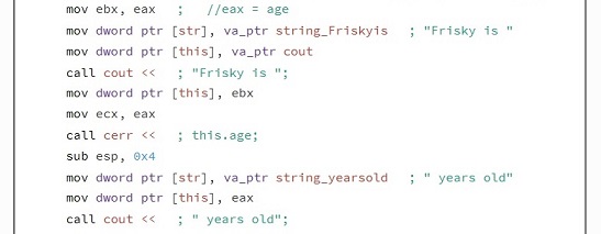 When a C++ program is compiled all class information is lost, class methods are converted to functions, function names are mangled variable names are converted to default names. It can be very confusing and hard to understand, that’s where the Relyze Desktop Application is very easy to use, and the way the assemble code is shown is more understandable.