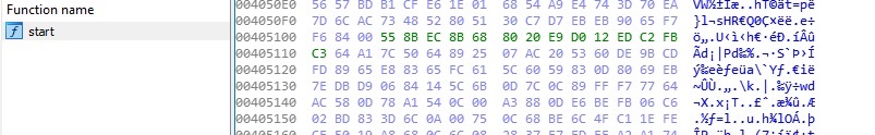 Looking at a packed file in IDA Pro, we can see the contents of the file are encrypted and unreadable.