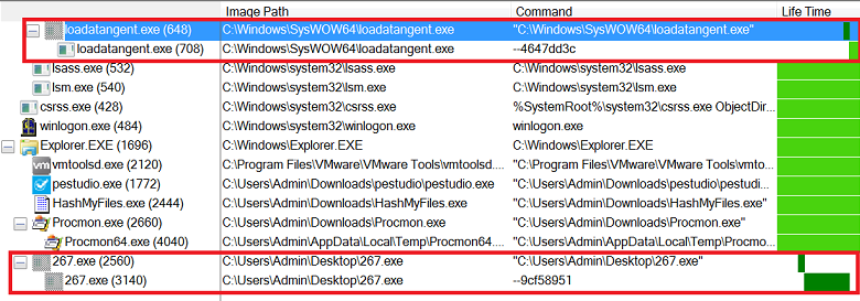One technique to monitor the unpacking of a piece of malware on a system is to use Process Monitor (ProcMon). ProcMon records filesystem activity on the machine it is show any new processes which have been created. A piece of packed malware on the system is called creates a new process, this is the child process with the same name. The new child process is then allocated free space within it by the parent process. The unpacked code is then injected into the free space within this newly created child process, this is called process injection.