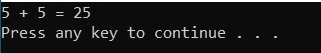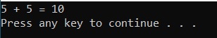 The main method on the bottom and the add function on the top. When the program is complete the output is as follows.