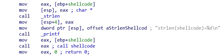 printf("strlen(shellcode)=%d\n", strlen(shellcode));//print out length of shellcode