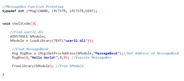 We will now look more closely at the shellcode_function. The code for this function if you were to write the code in c language would be simple as: